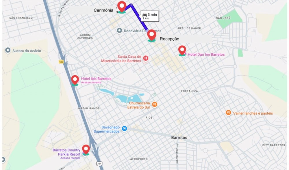 - Hotel Dan Inn Barretos: Pr. Francisco Barreto, 260 Centro, Barretos SP, 14780-050 950m da recepção